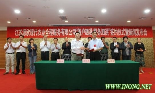江苏源欣现代农业负责人蒋海方表示,泗洪县是中国农村综合改革试验联系点,目前正在实施“三个集中”,促进“三化”进程。同时又十分重视新型农业生产经营体制的建设,成效显著,很是了不起。基于这样的背景和外部环境,在省农科院的号召下,江苏汇隆投资担保公司和江苏苏欣农机连锁公司决策,三方合作并在泗洪投资设立“江苏源欣现代农业全程服务有限公司”。这是全省第一家以农业生产全程服务为主体定位和运行特色的创新型公司,旨在依托省农科院的科技优势、江苏汇隆投资担保公司的资金担保优势以及江苏苏欣农机连锁有限公司的行业龙头优势,为泗洪的农业种植合作社、家庭农场等提供全程、高效的社会化服务。